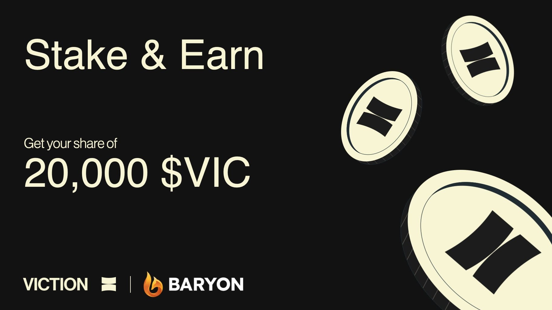 There is also an opportunity to stake your VIC tokens on Baryon and claim a portion of the 20,000 $VIC incentive pool. This limited-time offer will only be available for one month.