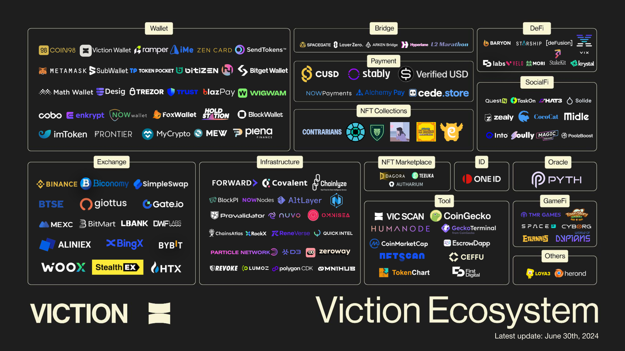 - Viction welcomes a wave of new projects in June, including Chainlyze, BlazPay, BlockWallet, NFTs2ME, Zeroway, Wigman, Omnisea, Cede.store, Quick Intel, StakeKit.