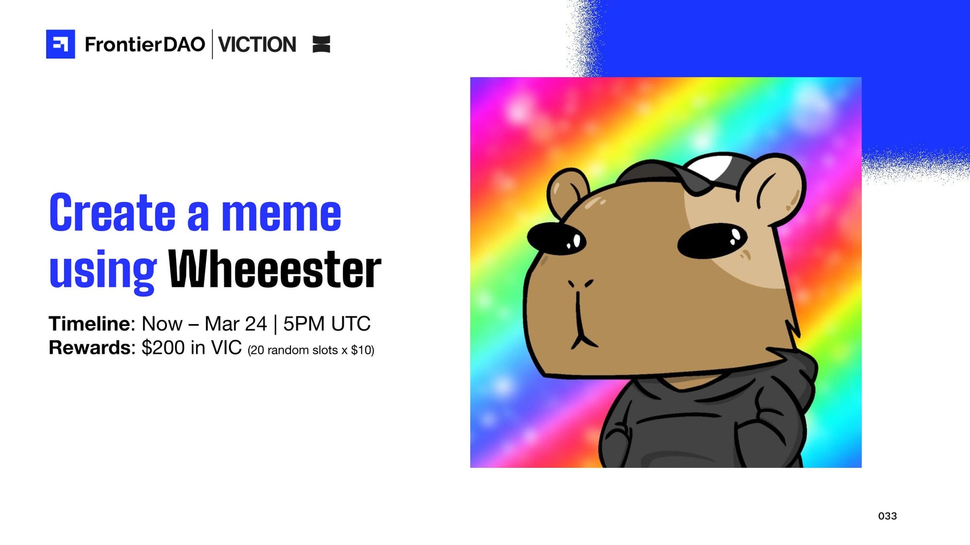 To welcome Wheester into the ecosystem, Viction, FrontierDAO, and Wheester hosted a meme contest. 20 random winners were featured for bringing their positive energy to the community. Creators unleashed their creativity, submitting meme-tastic entries that showcased the community’s fun and playful side.