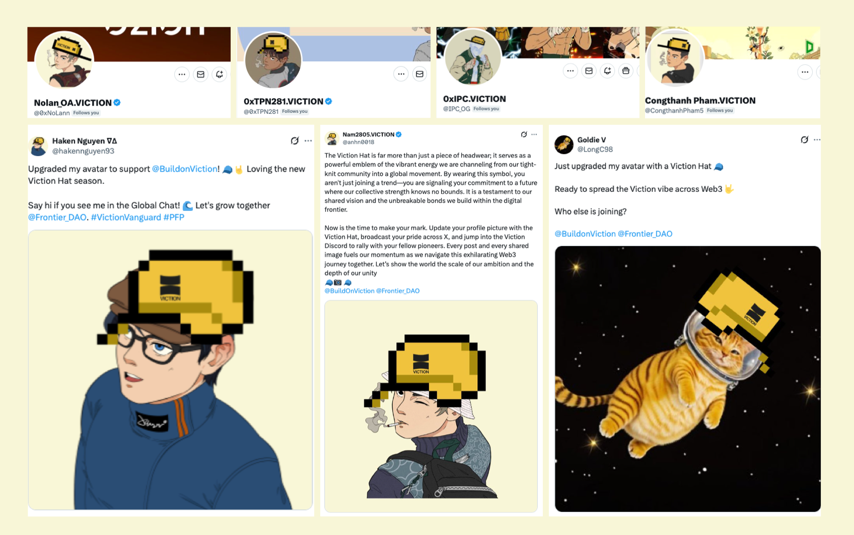 Viction Community members upgraded PFPs with Viction Hats and spread .VICTION identity across the X (Twitter) platform.