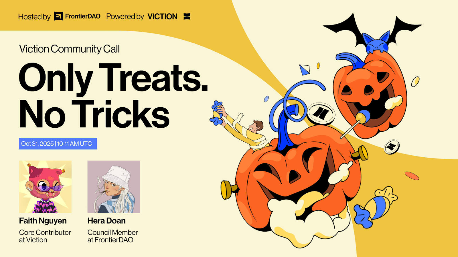 On October 31, Viction hosted a special Halloween Community Call. The session recapped October highlights, shared behind-the-scenes stories from Viction's 2nd birthday, and ended with a fun mini-game where participants earned real rewards.